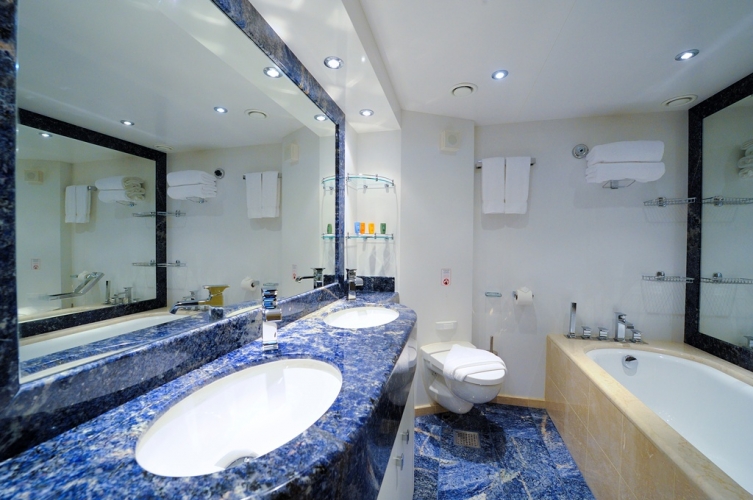 Description: MSC Yacht Club Royal Suites feature an expansive balcony, sitting area, marble bathrooms with a spa bath and separate shower, and bathrobes by Mascioni® of Italy. Double beds with Myform Memory® mattresses are made up with soft Egyptian cotton sheets and a pillow menu to ensure the perfect night’s rest. Beds are gladly converted to singles upon your request. Wifi access available.