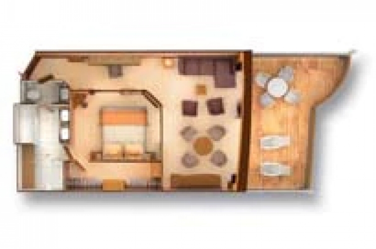 Description: Signature Suites feature expansive ocean views, forward-facing windows, dining for four to six, bathroom with whirlpool bathtub, guest bath, pantry with wet bar, and two flat-screen TVs. Complimentary Internet/Wi-Fi service. Approximately 977 sq. ft. of inside space, plus one veranda of 493 sq. ft. (46 sq.m.)
