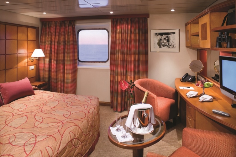 Description: All suites and staterooms feature: Pommery Champagne upon arrival, fresh fruit and flowers, beverage cabinet stocked to your preference, European bath amenities, fine bed linens, premium mattresses your choice of pillow, plush robes and slippers, personalised stationery, expedition binoculars, hair dryer, personal safe, and twice daily suite service plus turndown nightly. Two portholes